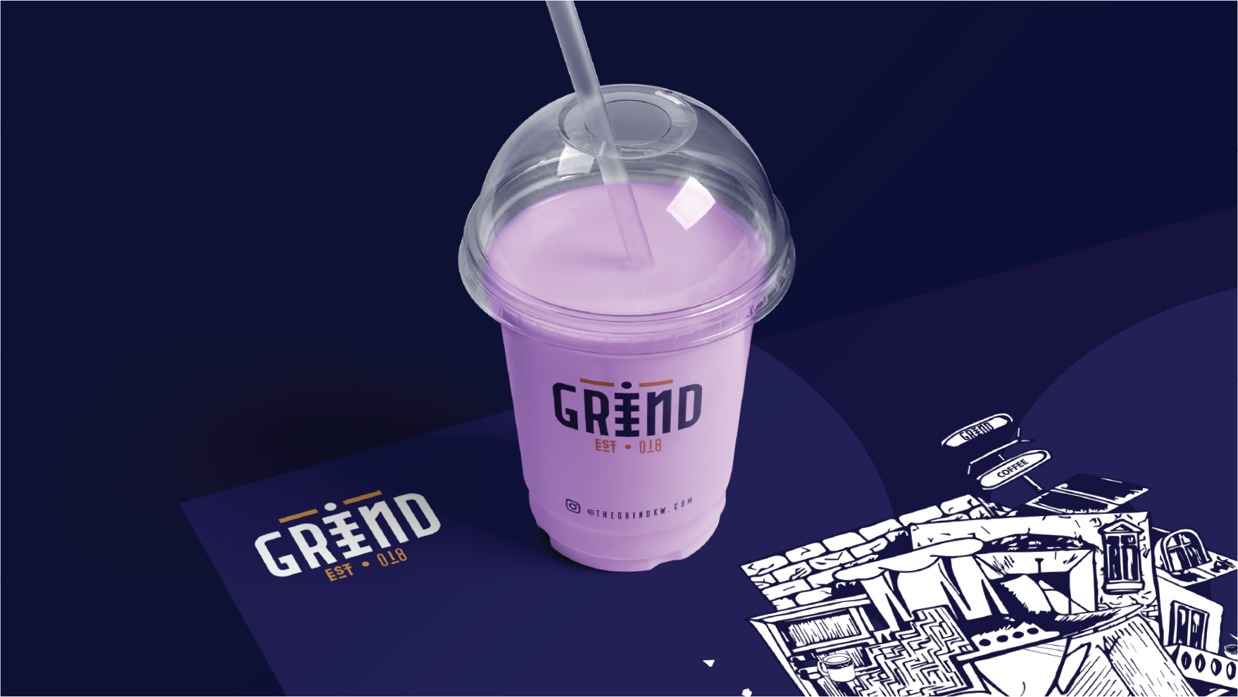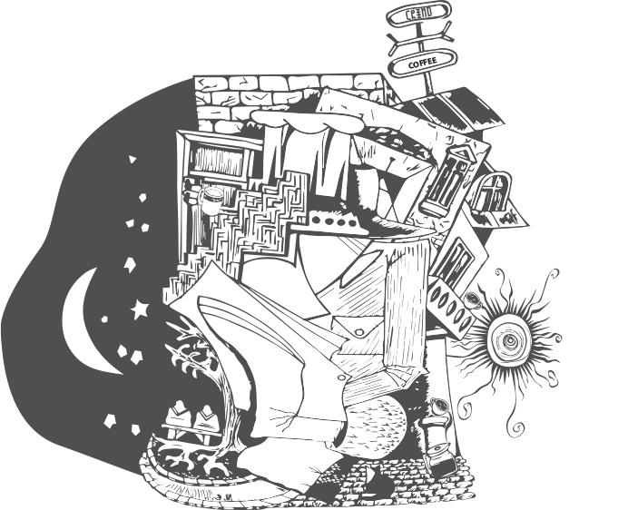 We’ve created an abstract illustration for the brand with a major theme concept of it the day and night. Inspired from the city chaos came from the most common usage of the coffee drinking coffee let you cross over the night and wakes you up or it makes you stay up till the next morning. and the shuffling inspired and evoked from the grinding process.