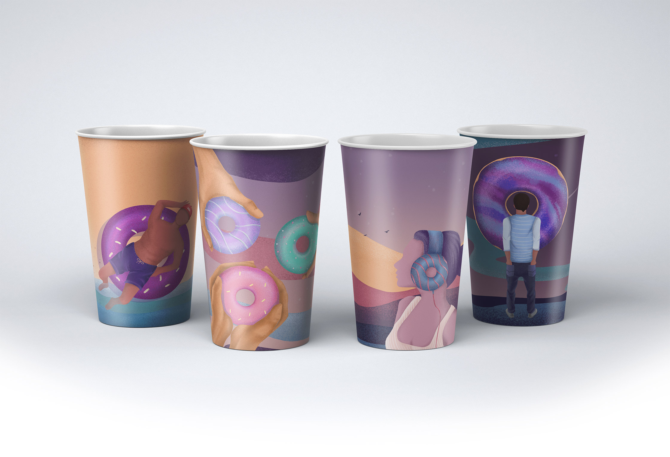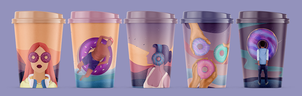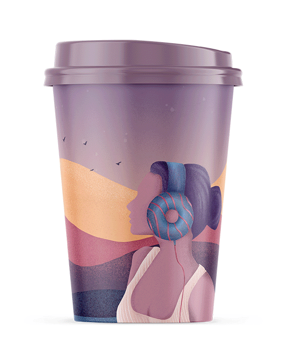 The brand has a different style of visual illustration on the cup itself it will be handled randomly to each client to make it look different on each service