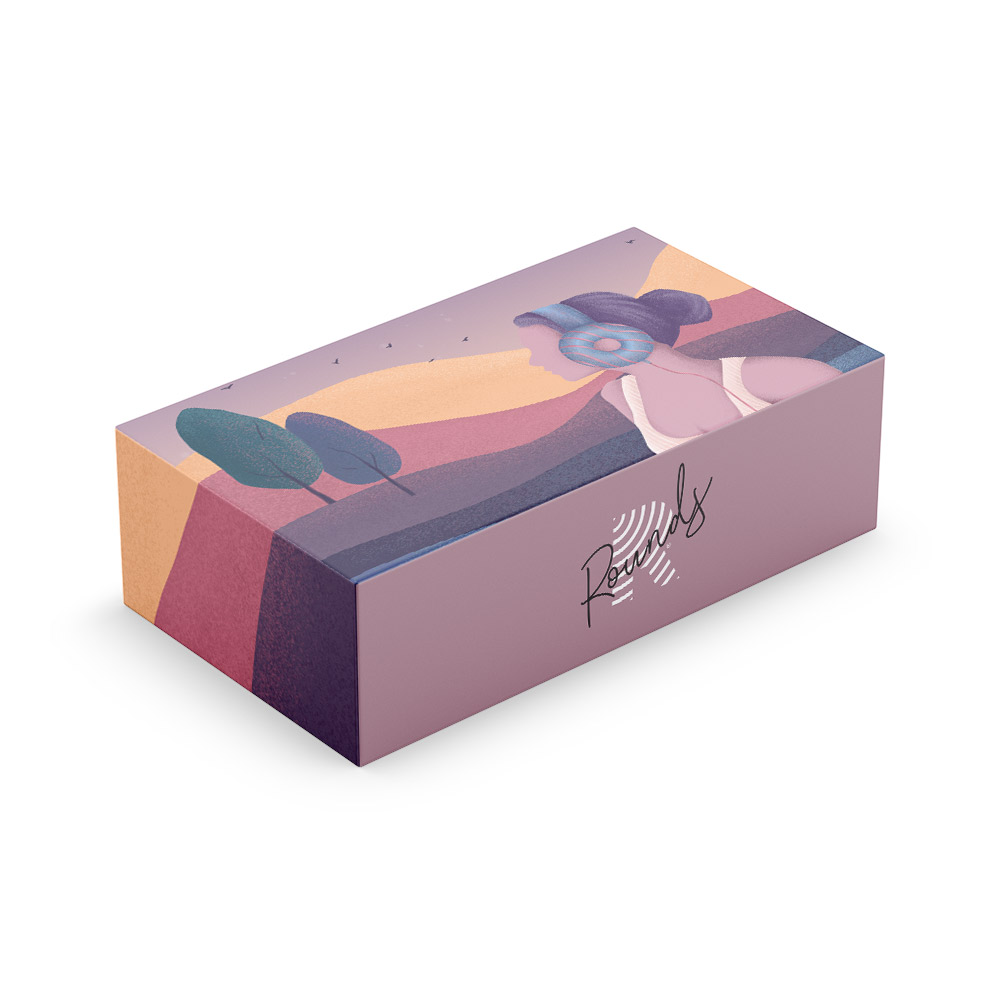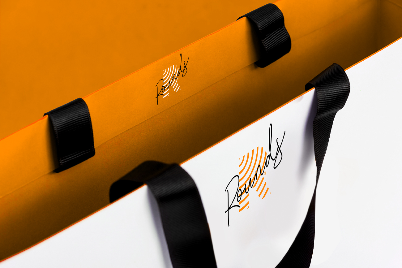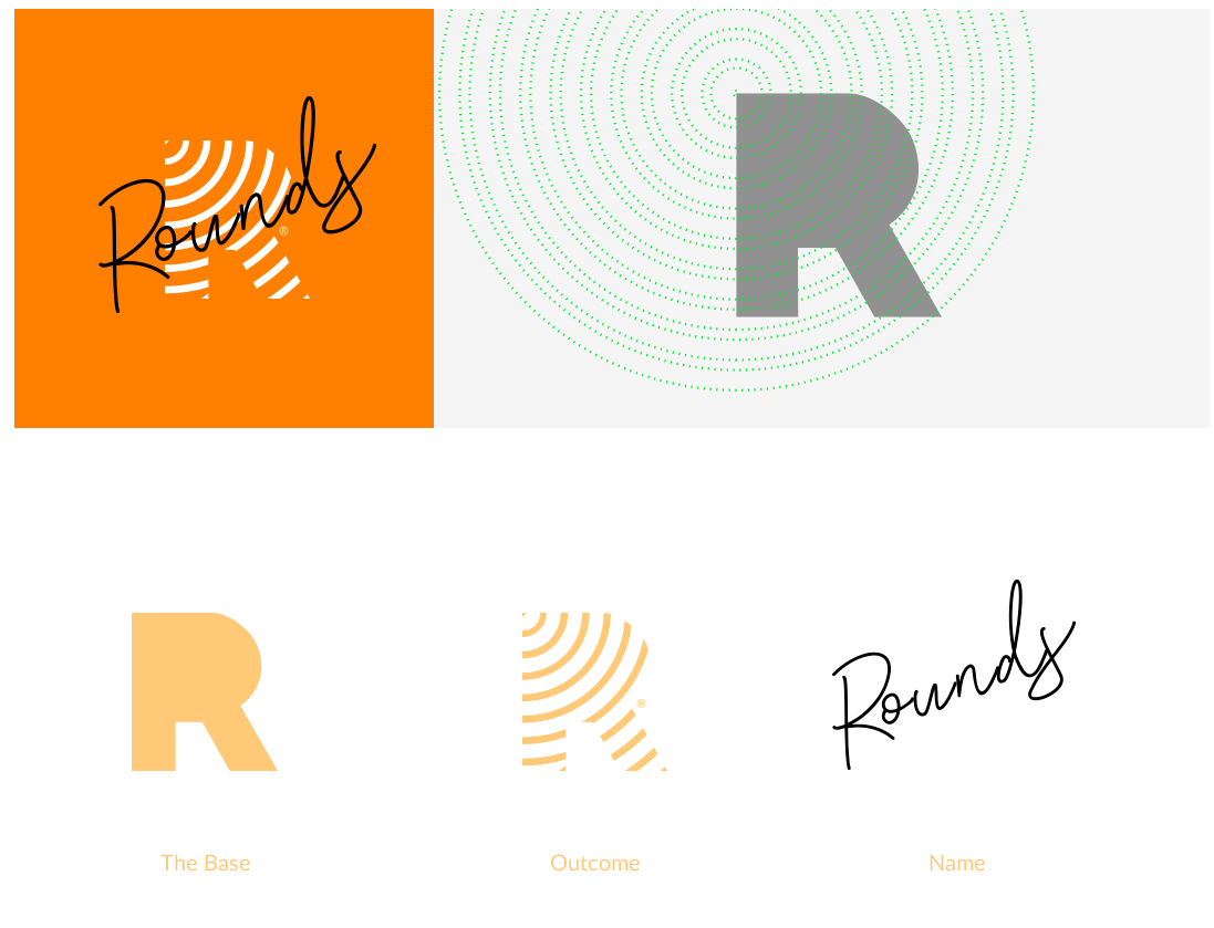 The mark is built using circles as a negative lines rounds on the first letter of the brand name which is the Rounds with a handwritten Rounds text in darker contrast color on the logotype